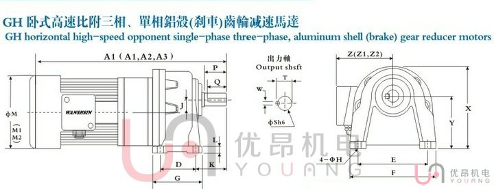 | 馬力 | 減速比 | 本體 | 型號 | A1 | A2 | A3 | D | E | F | G | H | L | J | K | M1 | M2 | X | Y | Z1 | Z2 | 重量KG |